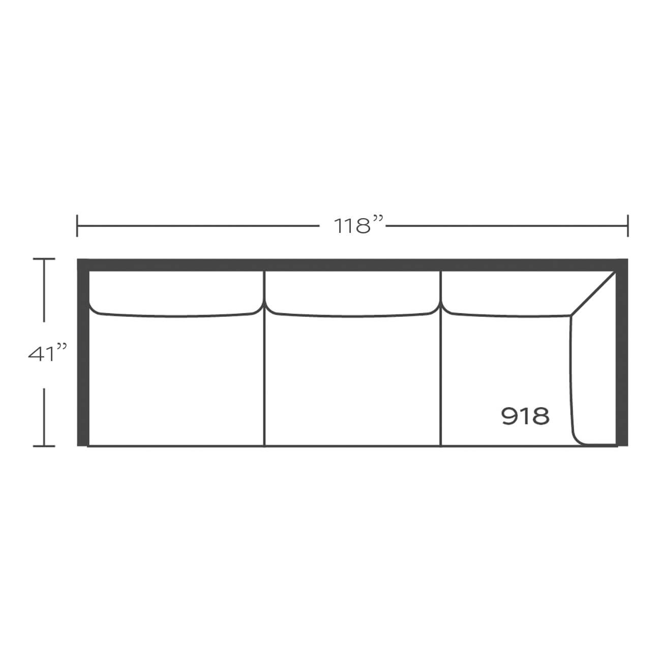 L 118" x D 41" x H 35"